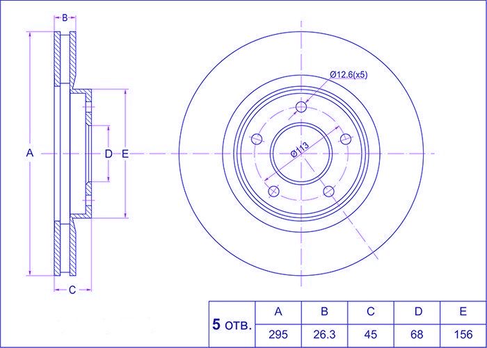 Диск тормозной /передний /TI-GUAR для Nissan Qashqai J10 X-Trail T31 2007-; 295/26,3мм; TG-40206-JD00A TG40206JG00A TG40206JG00C ST40206JD00A RN1303V 0986479358 09A71611