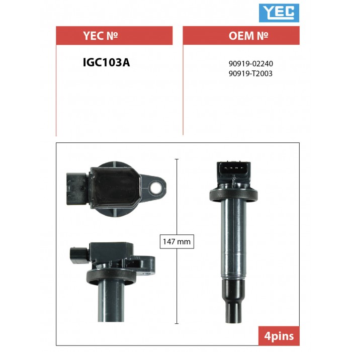 Катушка зажигания YEC для Toyota Prius 2000-2003 Vitz Raum Belta Probox Succeed Fielder Spacio Platz Sienta Porte Funcargo Ist Ractis Yaris; IGC103A; (TG-90919-02240 90919-02240) 9091902240 90919T2003