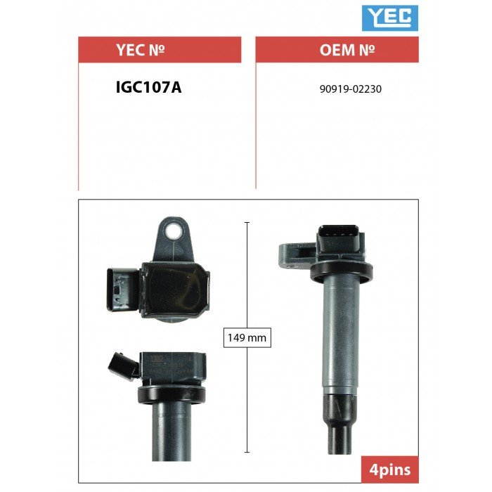 Катушка зажигания YEC для Toyota Land Cruiser 1998-2007 4.7L Mark II Chaser Cresta 96-2007 Lexus GS300 00-2005 Verossa Celsior; IGC107A; (TG-90919-02230 TYDI3001E IGC107) 9091902249