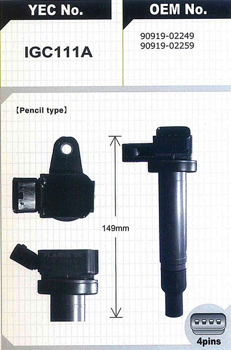 Катушка зажигания /YEC для Toyota Land Cruiser 100 200 Crown Majesta Soarer Lexus SC430 Celsior; H=149mm; IGC111A; (ST-SIG-TY) 9091902249 9091902259